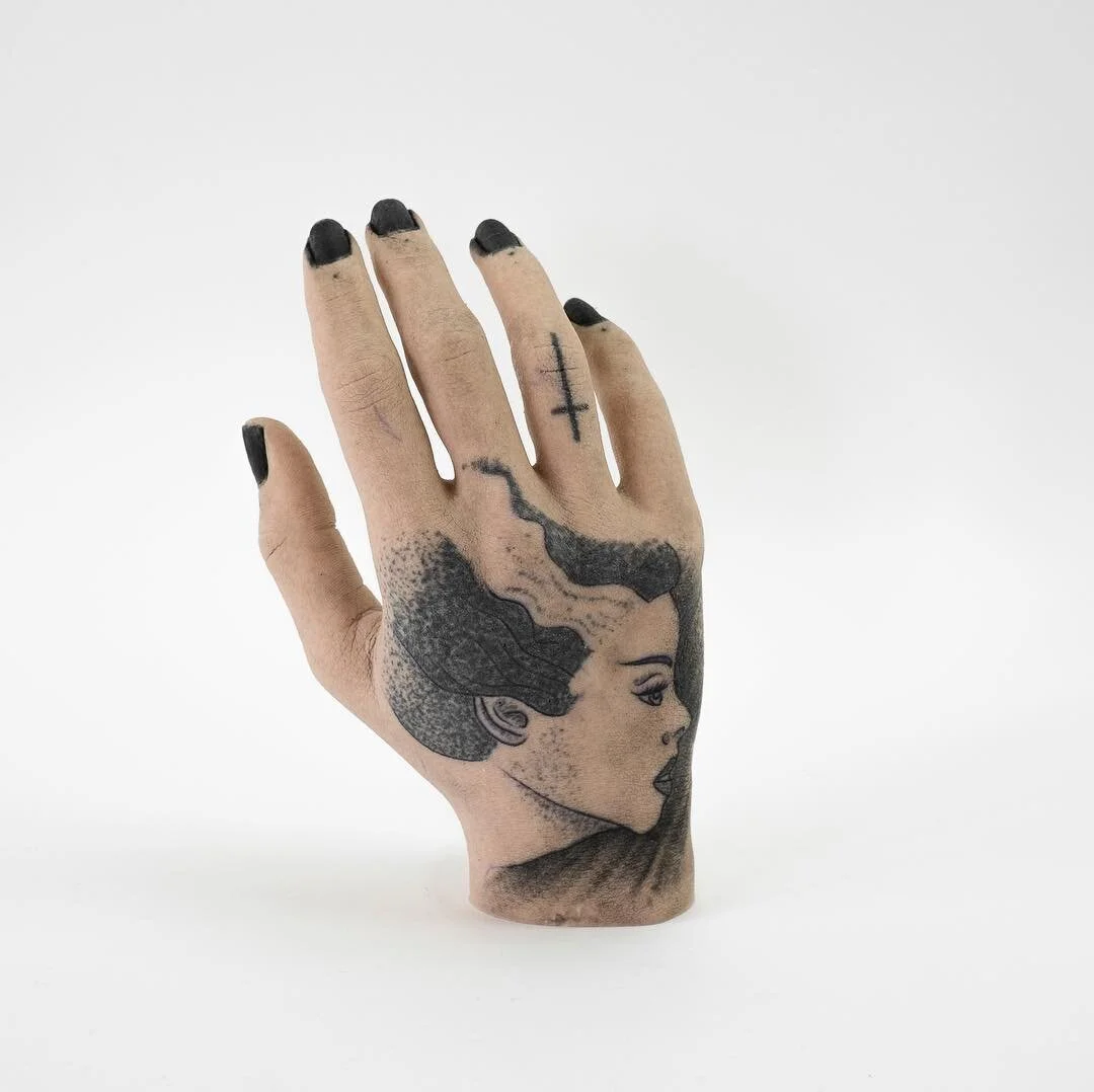 So, naturally, I contacted over 30 international, national, and local tattooists asking if they were interested in tattooing a hand or sheet that we could sell to raise funds for two incredibly important organisations, Safesteps and WIRE. And you can’t exactly say no to that! Lo and behold, these artists refused to shy away from the challenge and instead dedicated their time and demonstrated their artistic talent to bring us a beautiful and curious array of tattooed extremities and sheets.